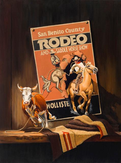 The San Benito Toss was chosen as the poster image representing the 80th anniversary of the San Benito County Saddle Horse Show & Rodeo which was held June 28-30, 2016 at Bolado Park, Tres Pinos, California. The original was auctioned off at Saturday night's BBQ and half of the proceeds was given to the horse show assn.